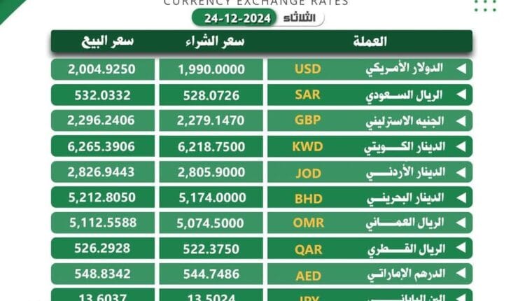 أسعار العملات الأجنبية مقابل الجنيه السوداني من بنك أمدرمان الوطني اليوم الثلاثاء 24 ديسمبر 2024م
