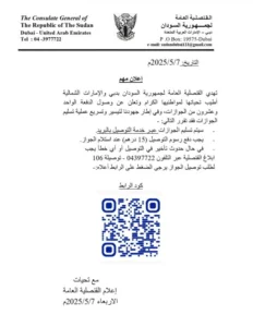 إعلان عاجل جداً من قنصلية السودان في دبي للمواطنين السودانيين