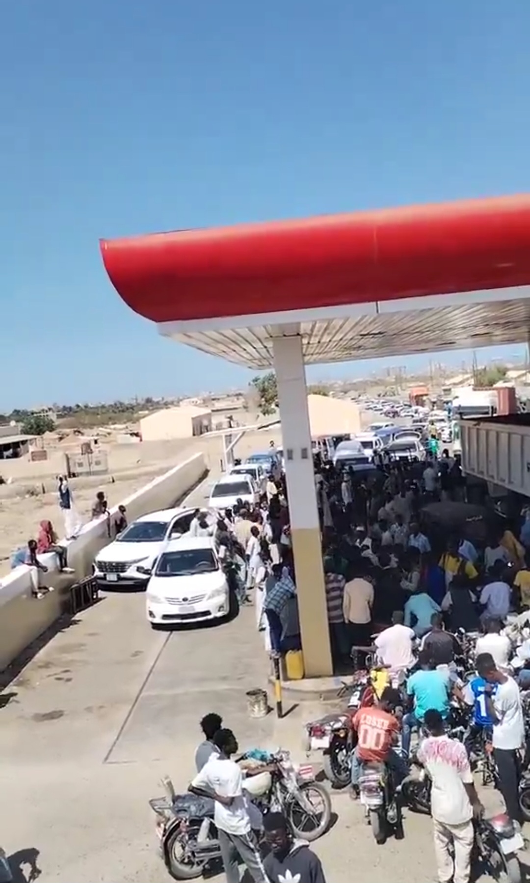 في مدينة بورتسودان، العاصمة الإدارية المؤقتة للبلاد، أفاد شهود عيان “دارفور24” بحدوث ازدحام شديد أمام محطات الوقود، حيث تصطف السيارات ووسائل النقل لساعات طويلة في محاولة للحصول على البنزين أو الجازولين.