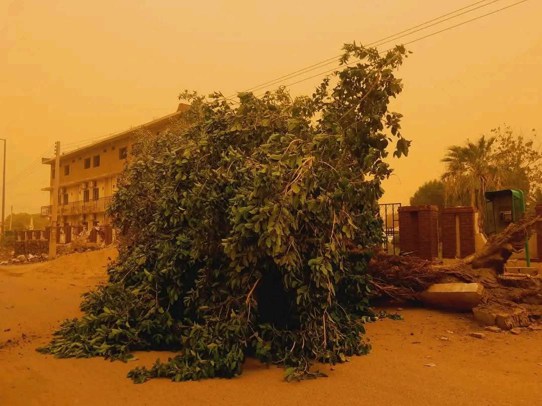 عطبرة: رياح عاتية تقتلع شجرة ضخمة وتسقطها على خطوط الكهرباء دون إصابات