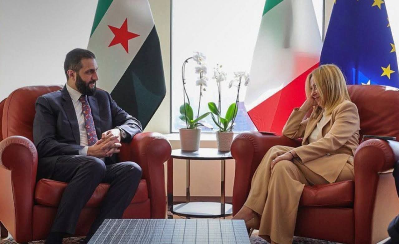 ـ أكدت رئيسة الوزراء الإيطالية جورجيا ميلوني، أن اللقاء الذي جمعها برئيس الجمهورية العربية السورية أحمد الشرع، على هامش مشاركتها في أعمال الجمعية العامة للأمم المتحدة، شكّل فرصة لتجديد التزام إيطاليا بدعم مسار إعادة إعمار سوريا مستقرة وذات سيادة.