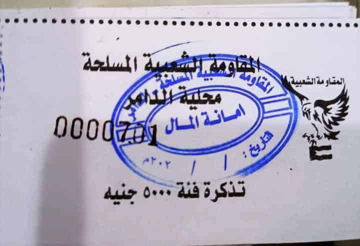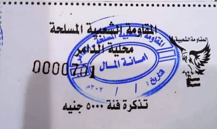 ـ صممت المقـ ـاومة الشعبية بولاية نهر النيل محلية الدامر تذاكر لأجل تحصيل مساهمات مالية وعينية لإسناد ودعم القوات المسلحة السودانية وجاء في الخطاب الذي حصل عليه موقع “آخر خبر” ..